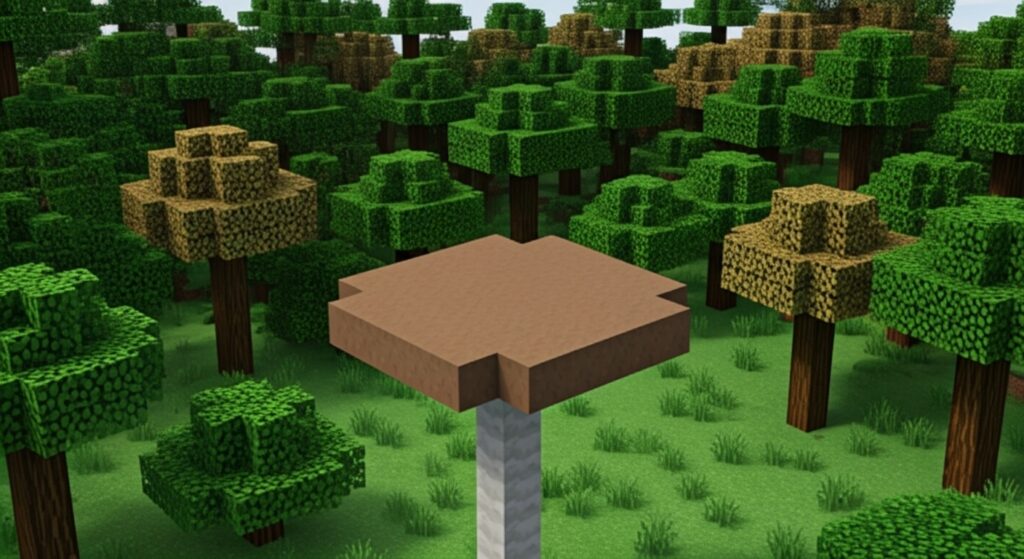 巨大キノコは、その名の通り巨大な木のようなキノコで、これを斧などで壊すと、ブロック1つにつき0~2個の小さなキノコをドロップします。