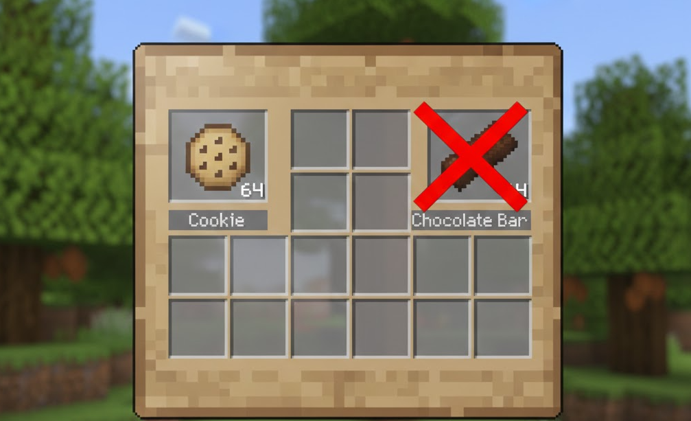 まず結論からお話しすると、MODなどを導入していない「バニラ(デフォルト)」のマインクラフト環境には、残念ながら「チョコレート(Chocolate)」という名前の単体アイテムは存在しません。インベントリをどれだけ探しても、板チョコやチョコバーを見つけることはできないのです。多くの初心者クラフターさんが「カカオ豆があるならチョコレートも作れるはず!」と期待してレシピを探すのですが、ゲームの仕様として実装されていないのが現実です。しかし、がっかりする必要はありません。マイクラの世界にはチョコレートそのものはありませんが、「チョコレート味」を連想させるアイテムや、カカオを使ったお菓子作りという要素はしっかりと用意されています。その代表格が「クッキー」です。また、ケーキの材料には含まれていませんが、ロールプレイとしてチョコケーキに見立てることも可能です。さらに、Java版や統合版のマーケットプレイスやアドオン、MODの世界に足を踏み入れれば、驚くほどリアルなチョコレート作りを楽しむことができます。まずは基本として、「バニラではカカオ豆を使ってクッキーを作ることが、チョコレート要素の基本である」ということを押さえておきましょう。これがマイクラにおけるスイーツ作りの第一歩となります。最近ではアップデートにより装飾の幅も広がっているため、工夫次第でチョコの世界を表現可能です。