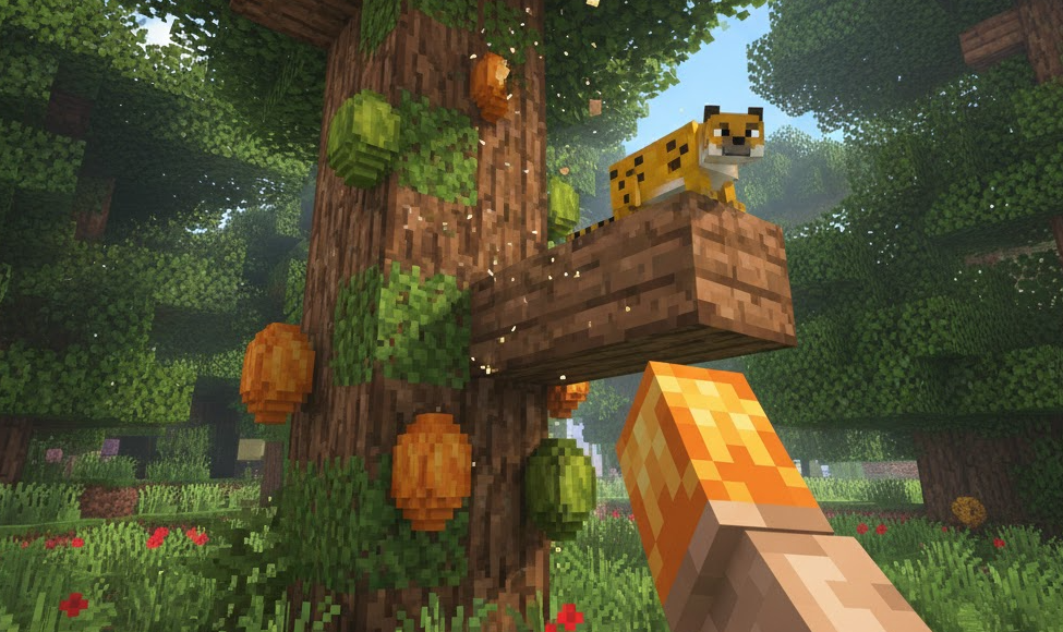 チョコレート関連アイテムを作るための最重要素材、それが「カカオ豆」です。カカオ豆を入手するためには、広大なオーバーワールドの中から「ジャングルバイオーム」を探し出す必要があります。ジャングルバイオームは、巨大な木々やツタ、パンダやオウムが生息する緑豊かな場所ですが、生成確率はそれほど高くありません。もし運良くジャングルを見つけたら、ジャングルの木の幹に注目してください。オレンジ色や緑色の小さな実が張り付いているのが見えるはずです。これがカカオの実です。カカオ豆の栽培は非常に簡単ですが、少し特殊なルールがあります。それは「ジャングルの原木」の側面にしか植えられないという点です。持ち帰ったカカオ豆を増やすには、拠点にジャングルの原木を設置し、その側面にカカオ豆を持って右クリック(使用)します。土を耕す必要も、水を引く必要もありません。植えられたカカオは時間経過とともに緑色からオレンジ色へと3段階で成長します。完全に熟したオレンジ色の状態で破壊すると、1つの実から2〜3個のカカオ豆がドロップするため、ねずみ算式に在庫を増やすことが可能です。骨粉を使えば一瞬で成長するため、緊急で大量に必要な場合でもすぐに対応できるのがカカオ栽培の魅力です。農業初心者でも簡単に自動化装置が作れるので、ぜひ挑戦してみてください。なお、ジャングルの木であれば「皮を剥いだ」状態でも栽培可能です。