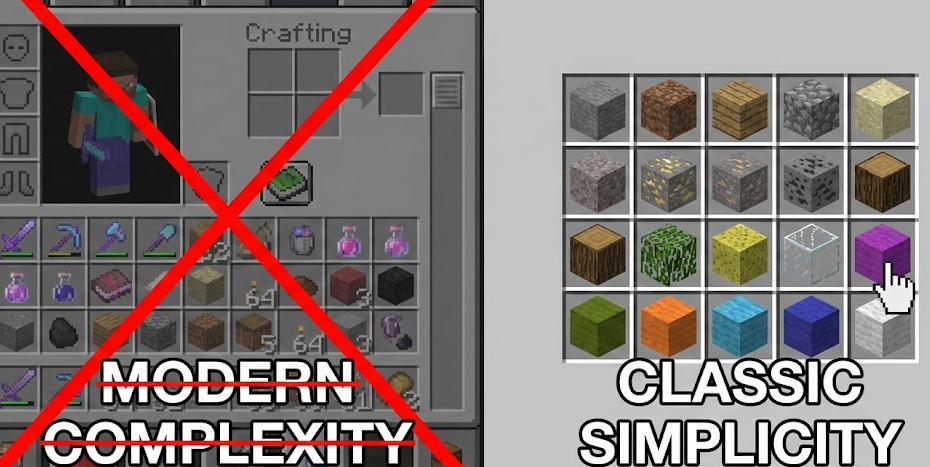 現代のマインクラフトには数え切れないほどのブロックが存在し、建材のバリエーションは数百種類にも及びます。コンクリート、テラコッタ、多種多様な木材、そして美しい装飾ブロックたち。しかし、マインクラフト クラシックの世界において、プレイヤーに与えられた選択肢はたったの「32種類」しかありません。これは一見すると圧倒的な不自由に感じられるかもしれませんが、実はこの制限こそがクラシック版の醍醐味であり、プレイヤーの創造性を極限まで試される要素なのです。