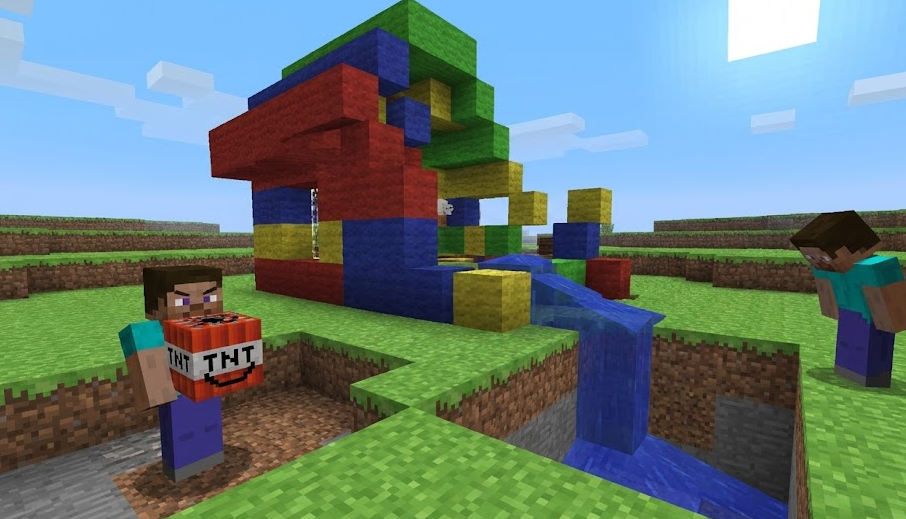 これはどういうことかと言うと、URLを知っている誰かが悪意を持って侵入してきた場合、そのプレイヤーはあなたが積み上げたブロックを一瞬で破壊し尽くすことができるということです。また、前述の通り水や溶岩の挙動が厄介であるため、マップ全体を水浸しにされると復旧はほぼ不可能です。TNT(爆薬)も存在しますが、これは着火しなくても殴るだけで爆発するため、意図せず大爆発を引き起こしてしまうこともあります。