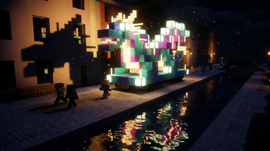 「BSL Shaders」や「Complementary Shaders」といった人気のシェーダーを使えば、ランタンの光が温かく周囲を照らし、水面がリアルに波打ちます。これにより、エレクトリカルパレードのような夜間イベントや花火ショーの迫力が何倍にも跳ね上がります。特に再現ワールドでは、色付きガラスや発光ブロックが多用されるため、シェーダーによる光の拡散効果が非常に映えます。