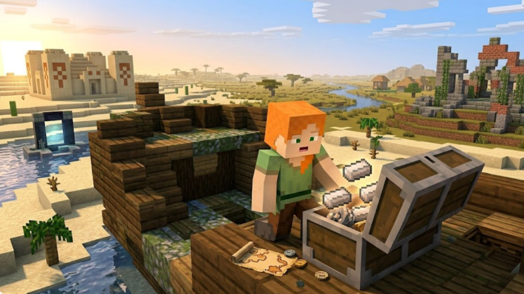 探索好きなら、構造物チェストの回収はかなり相性のいい鉄確保法です。国内情報では、鉄インゴットは村や廃坑などのチェストから入手でき、別の国内記事では森の洋館、難破船、ピリジャーの前哨基地、ダンジョン、要塞、ネザー要塞、ジャングルの寺院、砂漠の寺院、埋もれた宝、砦の遺跡、エンドシティなども候補に含まれています。もちろん毎回大量とは限りませんが、探索のついでに確保できるのが大きな魅力です。とくに序盤は、難破船や村を見つけるだけでも装備や食料、地図、エメラルドなどをまとめて拾えることがあり、鉄不足対策と拠点強化を同時に進められます。さらに、埋もれた宝や森の洋館のように、鉄以外のうまみが大きい構造物も多いので、単純な採掘の時間効率だけでは測れない強さがあります。採掘ばかりだと単調になりやすい人でも、探索を混ぜることでテンポよく鉄が増えていくのは大きな利点です。まとまった数を安定して掘るなら採掘、移動や冒険のついでに底上げするならチェスト戦利品。この役割分担で考えると、かなり使いやすい補助線になります。