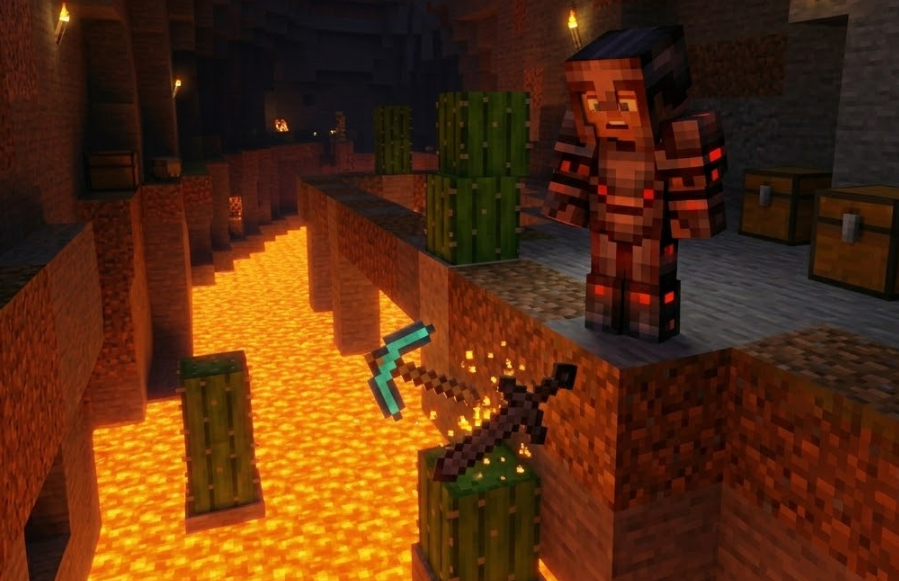 アイテムが消える原因は、時間切れだけではありません。落ちたアイテムは、溶岩・炎・サボテン・爆発などに触れると、自然消滅を待たずに壊れてしまうことがあります。特に、死亡地点が危険地帯だった場合は「5分以内に戻れば安心」ではなく、戻る前にすでに失われていることも珍しくありません。