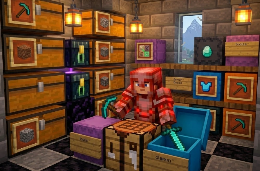 探索が長引くときは、途中で一度拠点へ戻る、仮チェストを置く、エンダーチェストへ重要品を先にしまう、といった小さな積み重ねが効果的です。エンダーチェストは死亡しても中身がその場に落ちないため、貴重品の退避先として非常に優秀です。シュルカーボックスは大量運搬に便利ですが、持ったまま深追いしすぎると逆に被害が増えるので、運搬用と保管用を分けると扱いやすくなります。