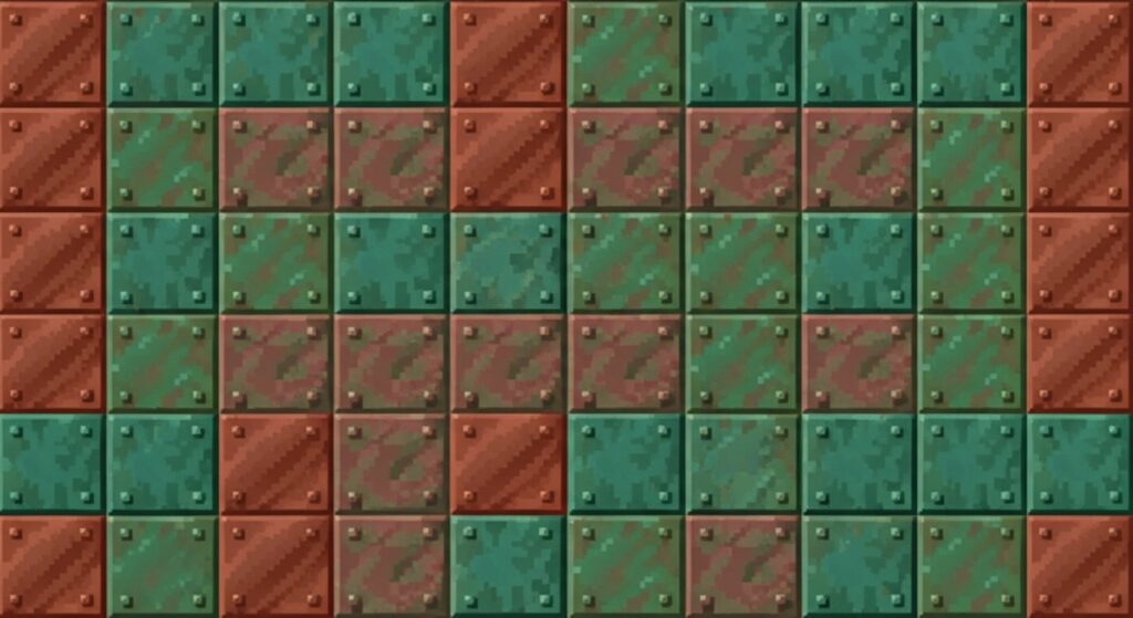 銅インゴットを手に入れるには、まず地下で銅鉱石を見つける必要があります。銅鉱石は比較的浅い層から深層まで広く分布しており、特徴的な青緑色の模様ですぐに見分けがつきます。採掘した銅鉱石をかまどで製錬することで、銅インゴットを入手できます。たった3つのインゴゴットで大切な建築物を守れるのですから、コストパフォーマンスは非常に高いと言えるでしょう。