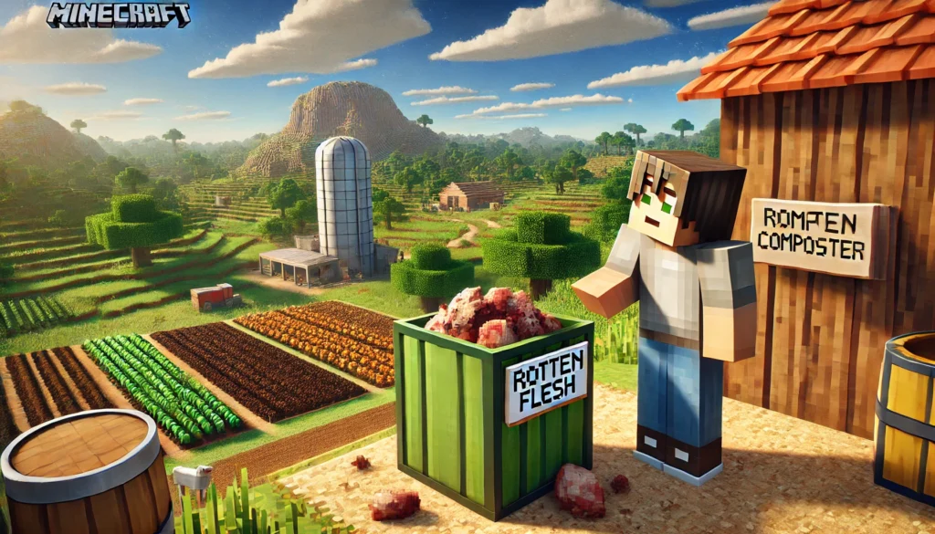 大量に手に入れた腐った肉を見て、「これはコンポスターで骨粉にできるのでは?」と考えたことがあるプレイヤーは少なくないでしょう。植物系のアイテムや食料を堆肥にして肥料(骨粉)に変えるコンポスターの仕組みを考えると、有機物である腐った肉も使えそうに思えるのは自然なことです。