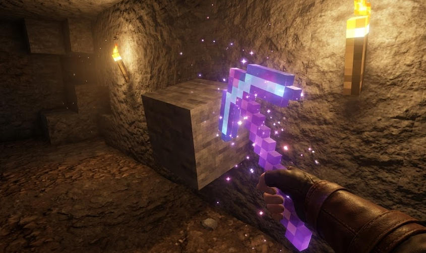 前述した「二度焼き」の手順は確実ですが、大量の滑らかな石が必要な建築プロジェクトなどでは、時間と燃料のコストが大きな負担となります。そこで活用したいのが、エンチャントの一つである「シルクタッチ(技能)」です。このエンチャントが付与されたツルハシを使用することで、作業効率を劇的に向上させることができます。