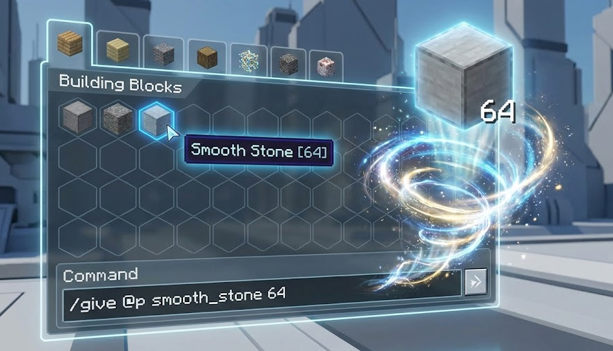 サバイバルモードではなく、クリエイティブモードで建築の試作をしている場合や、サーバー管理者として特定のアイテムを付与したい場合には、コマンドを使用するのが手っ取り早いです。滑らかな石のアイテムIDは、Java版と統合版(Bedrock版)で共通しており、非常に覚えやすいものになっています。