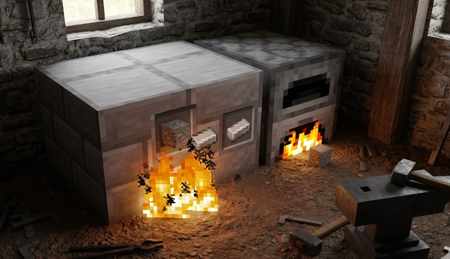 滑らかな石を作る最大のメリットの一つが、作業台のアップグレード版とも言える「高炉」のクラフト素材になることです。サバイバル生活が進むにつれて、鉄や金などの鉱石を大量に精錬する機会が増えてきますが、通常のかまどでは処理速度に不満を感じることも多いでしょう。