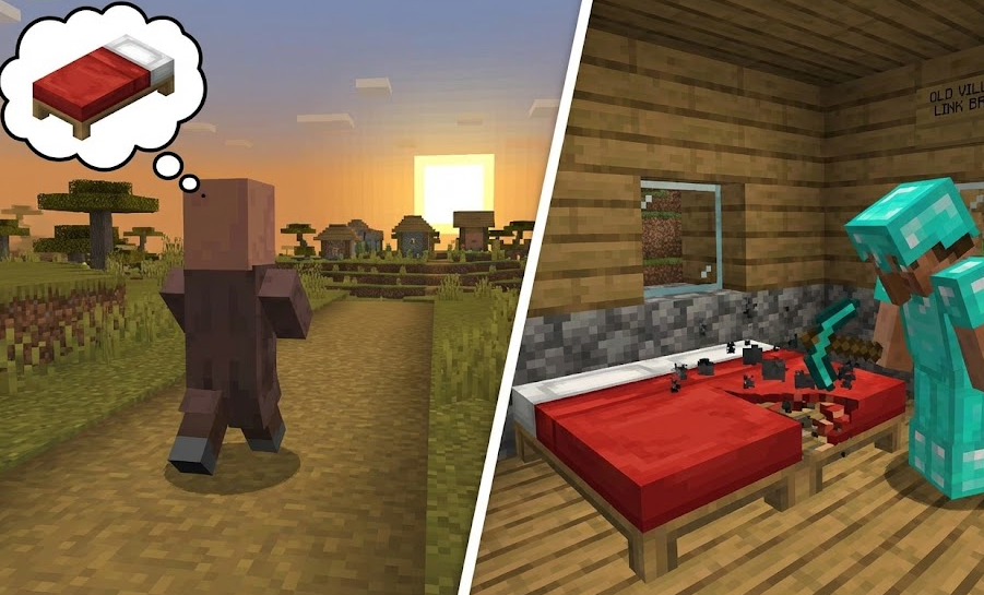 • 元の村のベッドや職業ブロックを破壊してリンクを切ることが重要だ