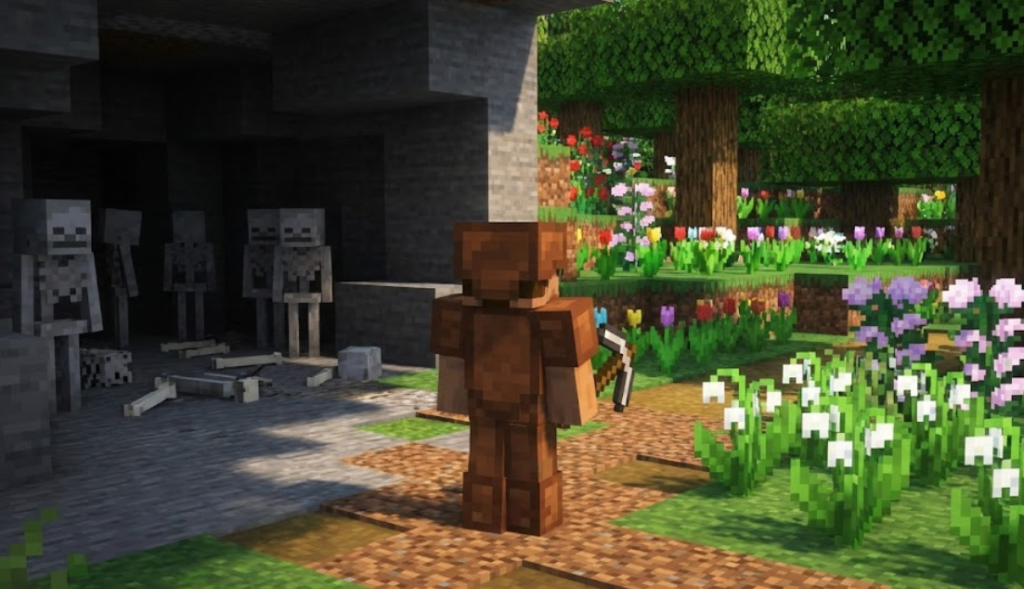 さらに骨粉供給(スケルトン系)と組み合わせれば、「骨→骨粉→花→白の染料」の流れをほぼ放置で回せます。花ファームは他色の染料素材にも転用しやすいので、色付きコンクリート建築をする人ほど早めに作る価値があります。