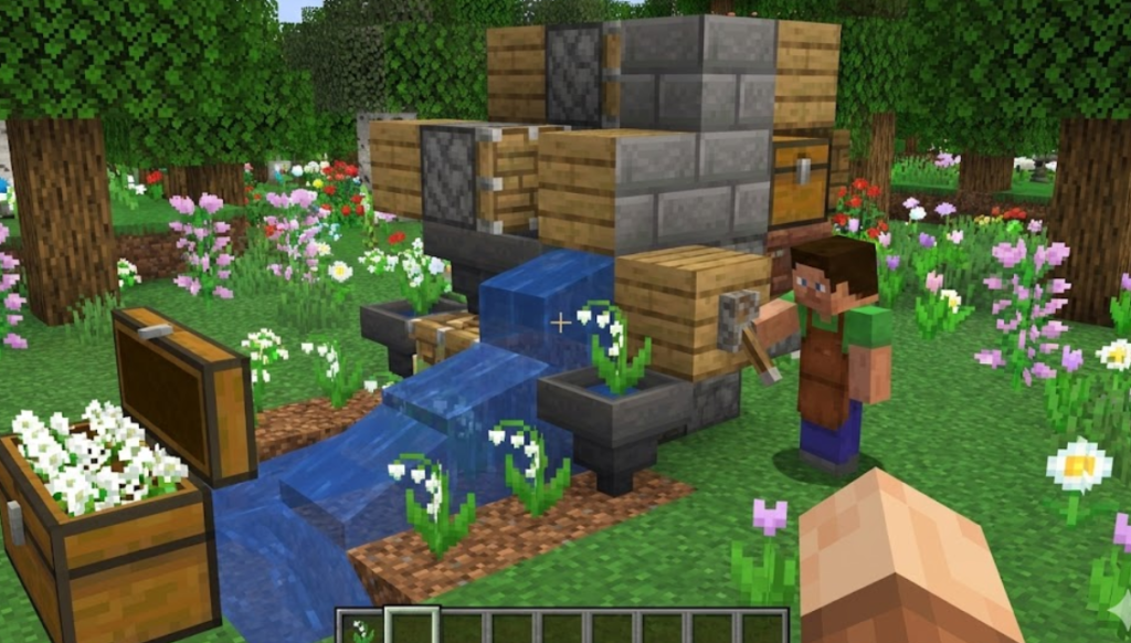 作り方のイメージはシンプルで、(1)スズランが出る草ブロック周辺に骨粉を供給する仕組み、(2)生えた花を壊して回収する仕組み、の2点を押さえればOKです。ディスペンサーで骨粉を撒き、ピストンや水流で花をアイテム化し、ホッパー系で回収する方式は定番です。スズラン自体は「1個→白の染料1個」で変換できるので、チェストに貯まった分がそのまま白の染料の在庫になります。