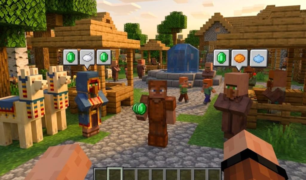 取引は「足りない分の補助」として優秀です。まず行商人は、エメラルドで染料をまとめ売りする取引があり(例:エメラルド1個で染料3個)、さらにスズランや白いチューリップなどの花を扱うパターンも確認できます。運要素はありますが、序盤で花ルートを立ち上げるきっかけになり得ます。