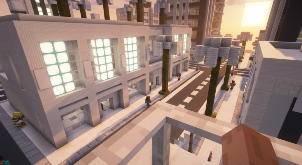 ここからはプレイ提案ですが、白の染料を活かす建築で定番なのは「白色コンクリート+ガラス」の現代建築です。白色コンクリートパウダーは砂と砂利に白系染料を足して作り、水で固めてコンクリートにすると、発色が強くスッキリした壁材になります。窓は白色ガラスや無色ガラスを組み合わせ、幅や高さを揃えるだけで“建築っぽさ”が出やすいのがメリットです。